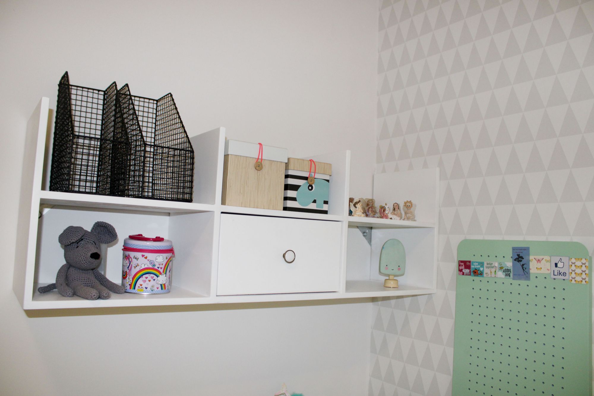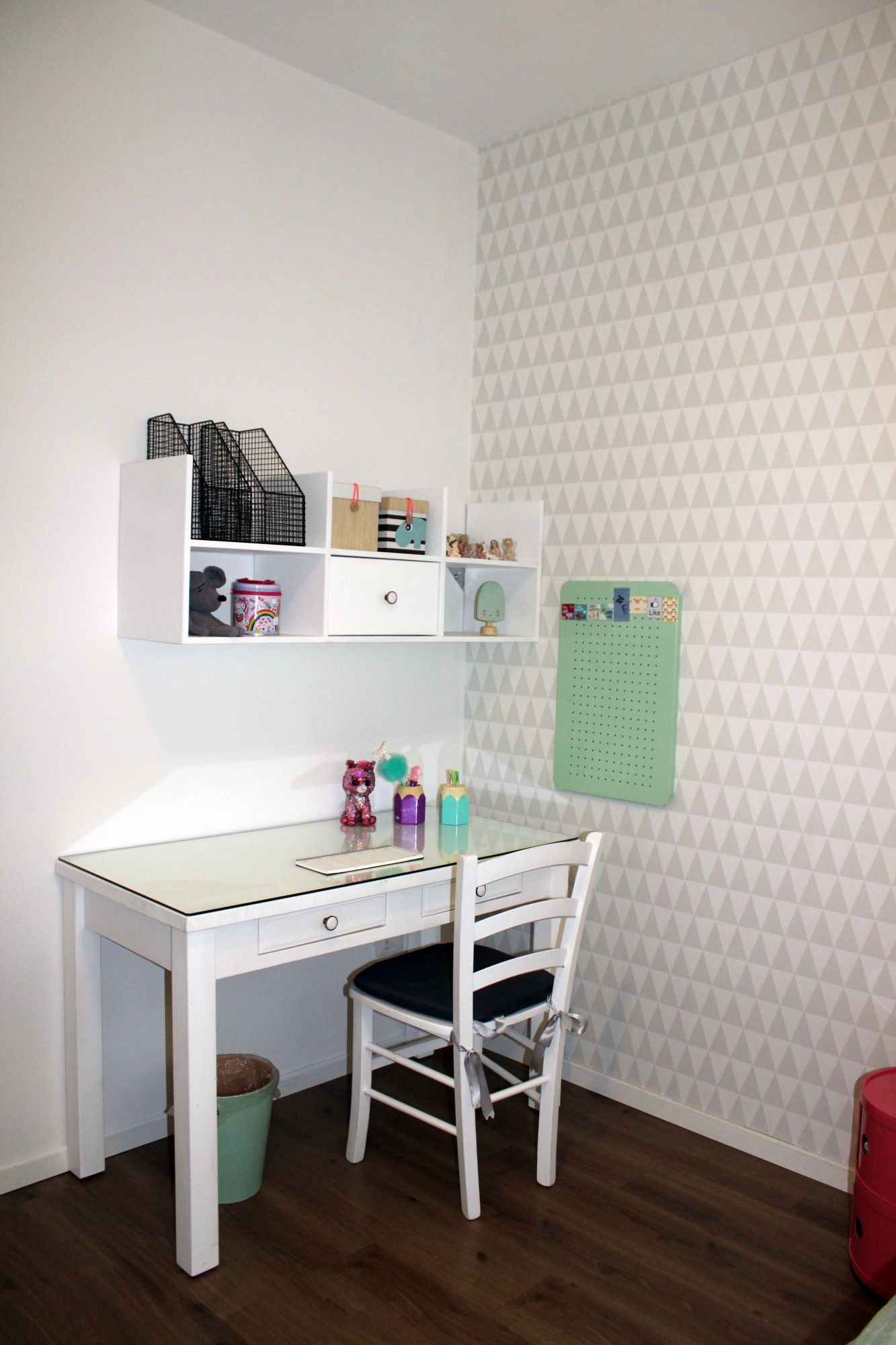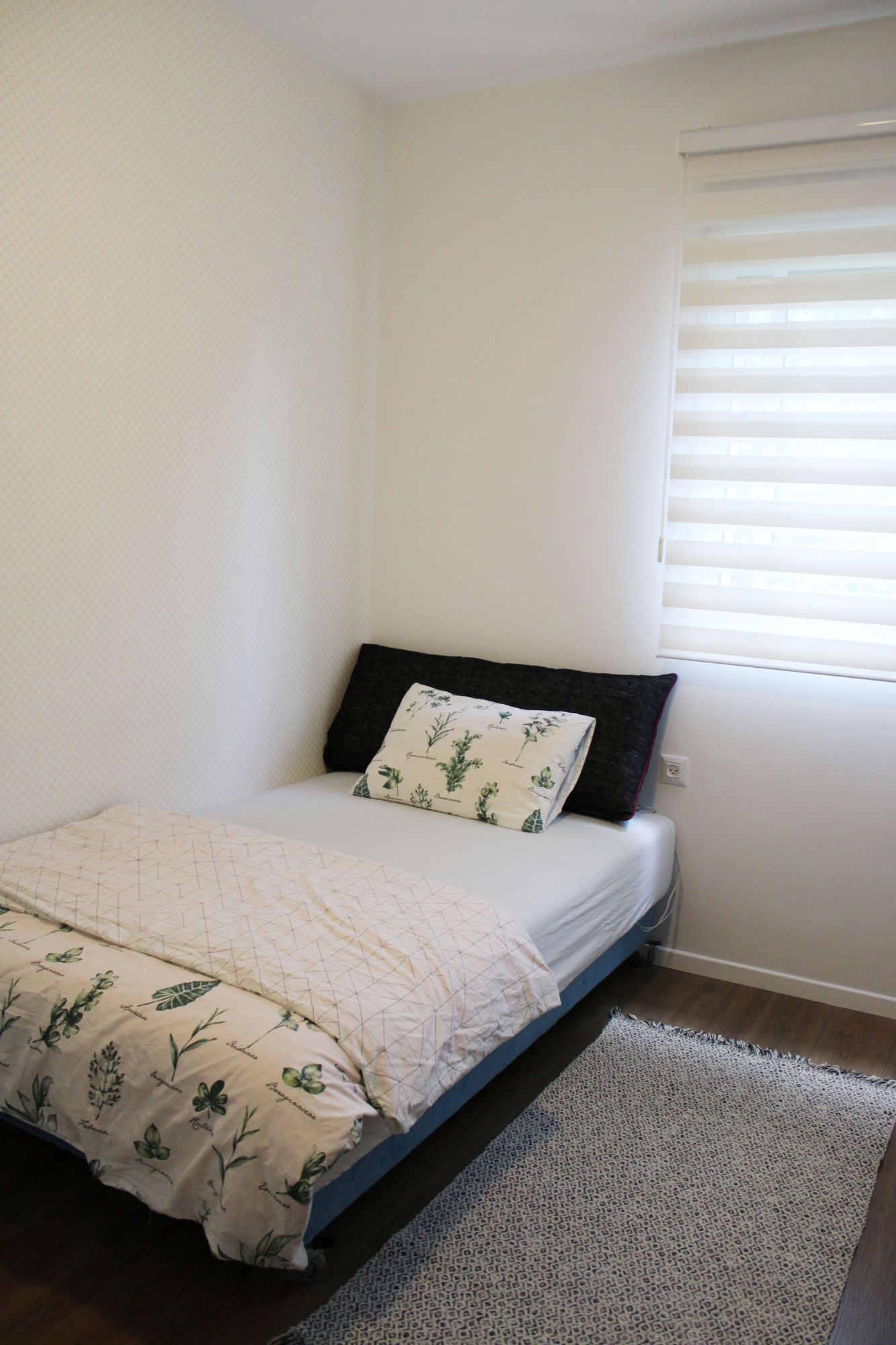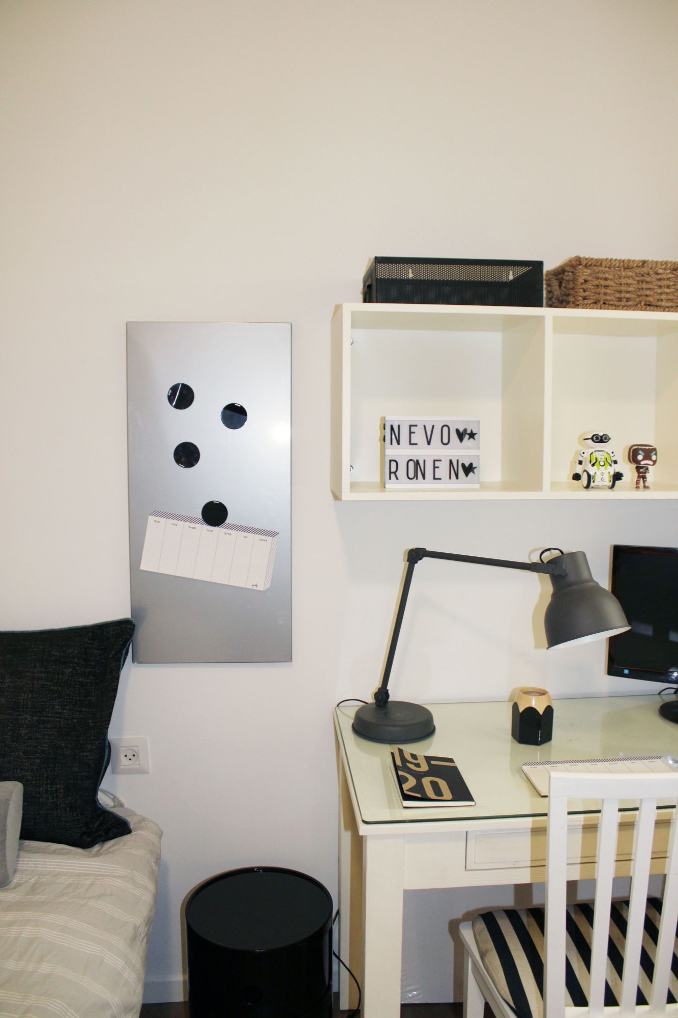 רוב הרהיט הקיים נשאר והשדרוג נעשה באמצעות: טפטים, צביעת קירות, טקסטיל ואקססוריז. תוכננה ספריית ברזל בחלל המשותף המשמשת לאחסון הפריטים איתם הם נכנסים הביתה (מפתחות, תיק, דואר), וגם פרטי נוי.