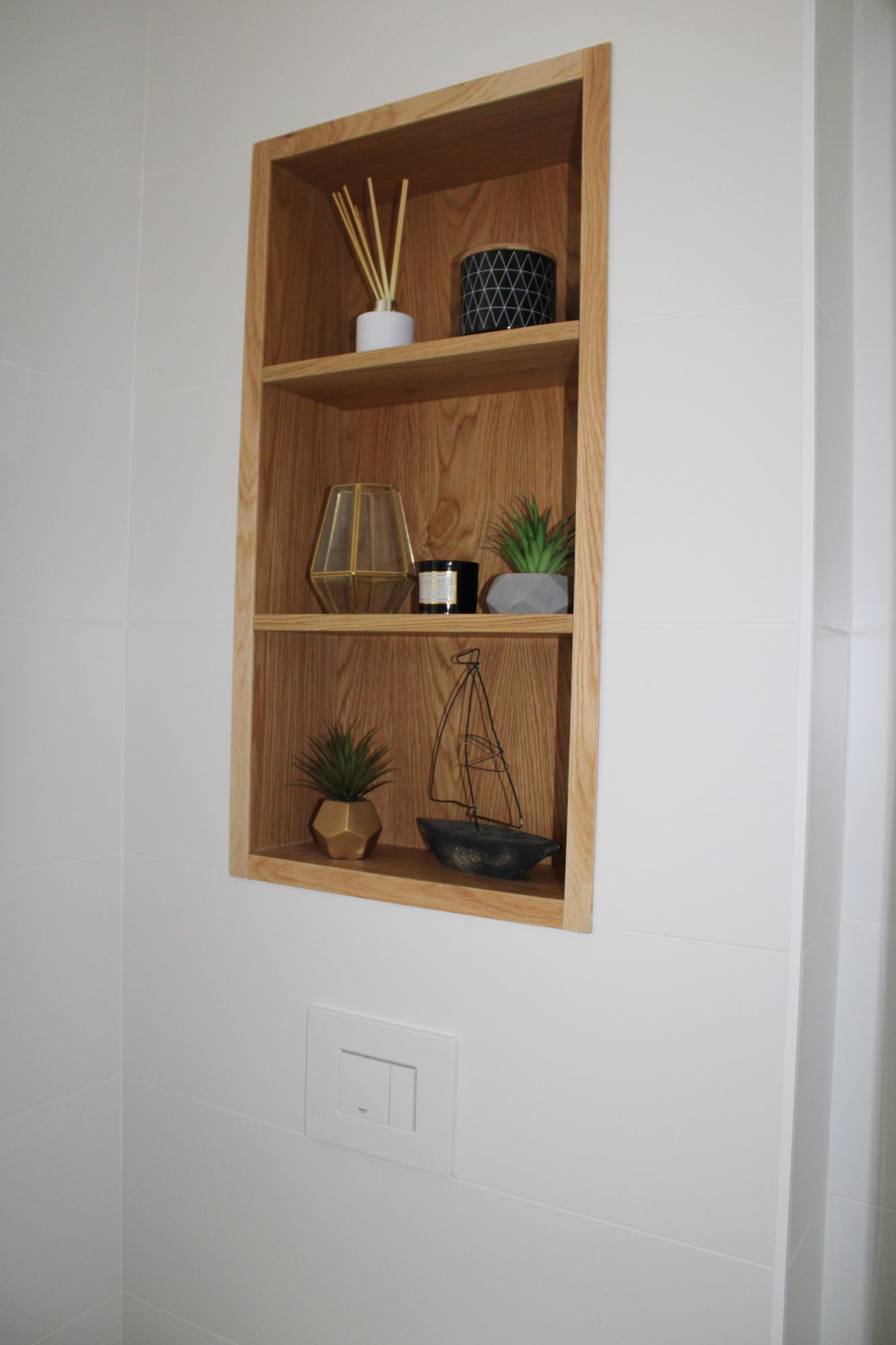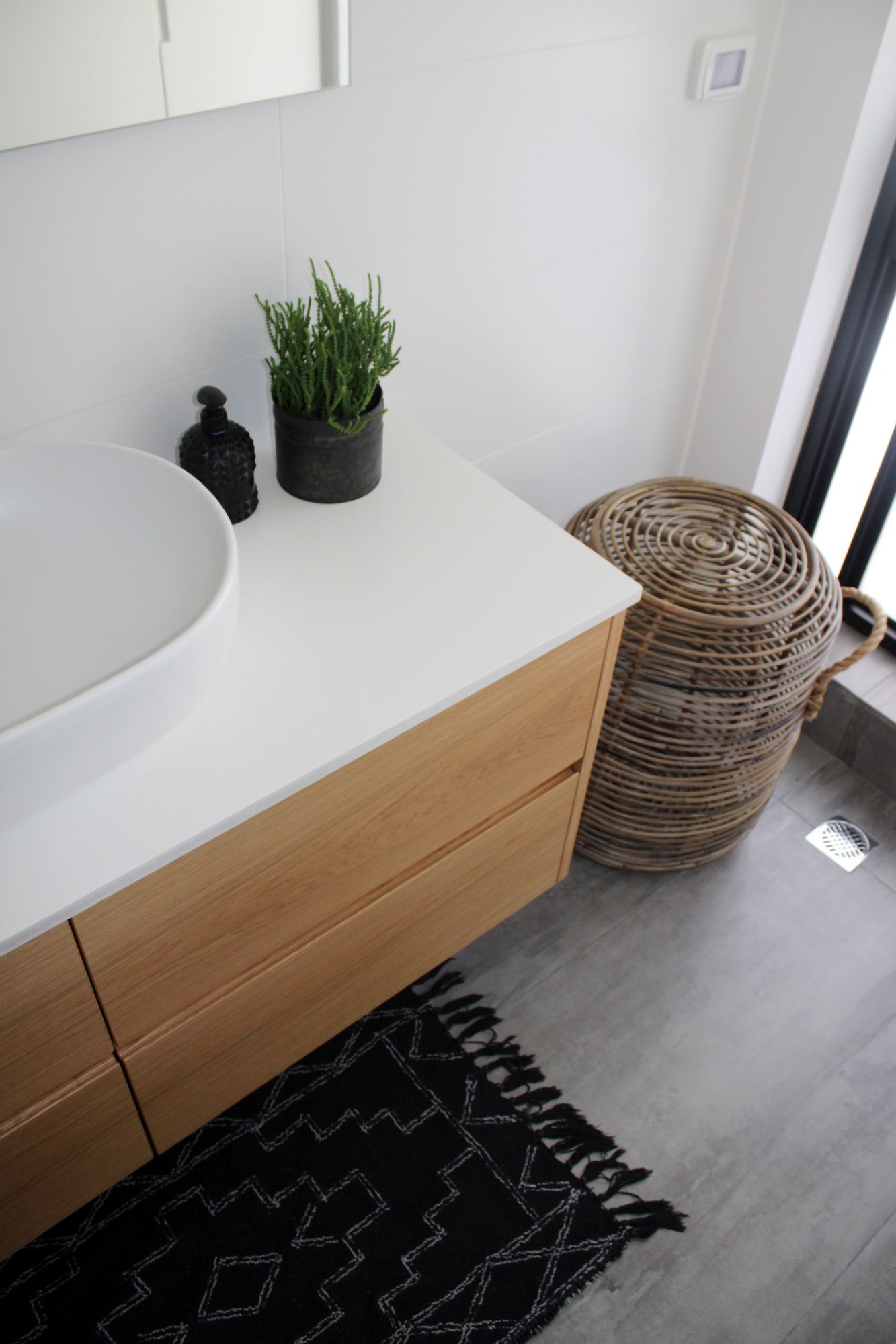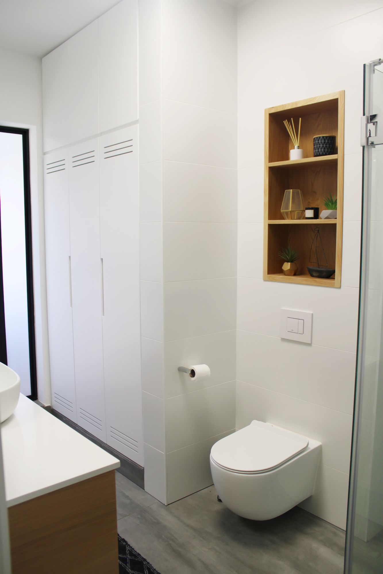 עיצוב פרקטי, נקי ונעים בעזרת שימוש בשלושה גוונים - לבן, אפור ועץ אלון המעניקים תחושה של מרחב וניקיון.