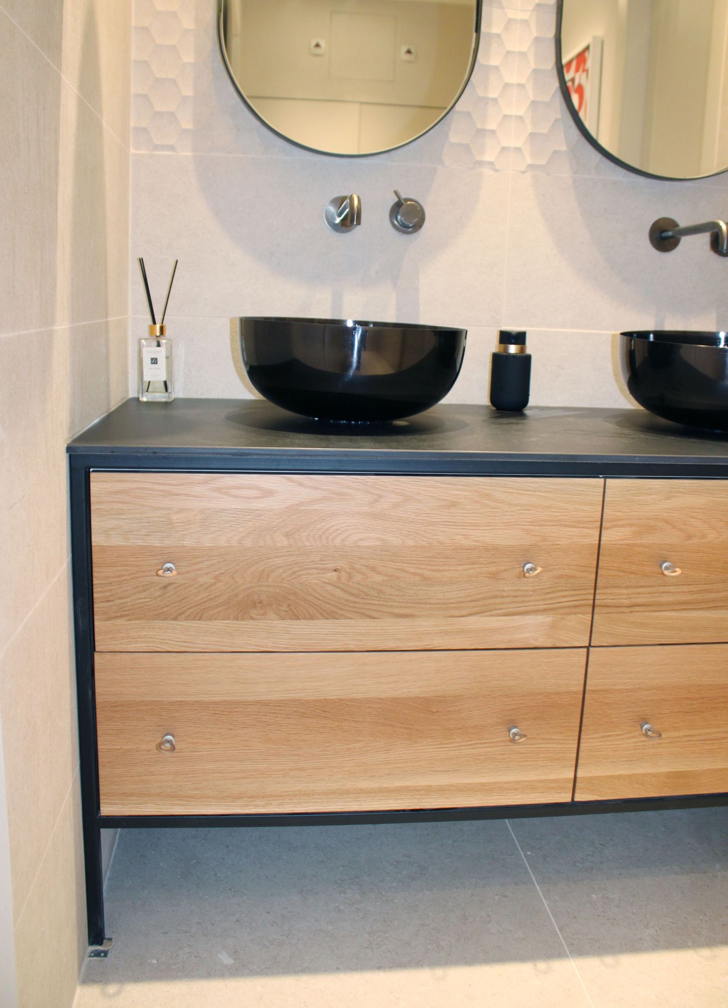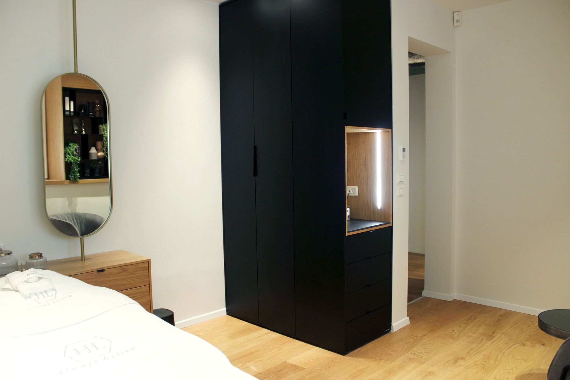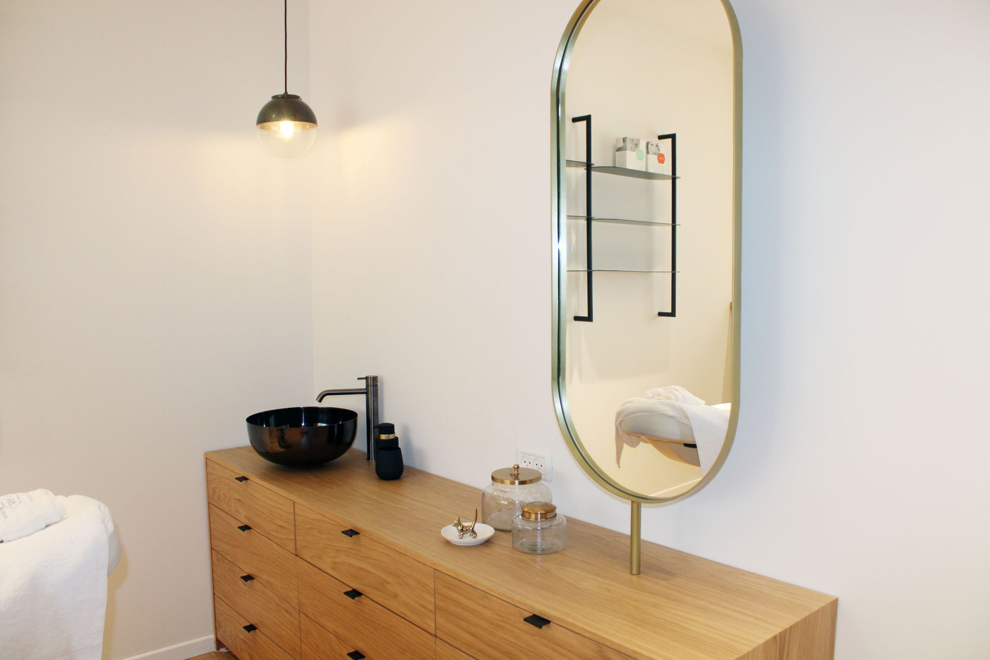 - נגרות מותאמת אישית להצגת תכשירי הקוסמטיקה ואחסון נלווה.