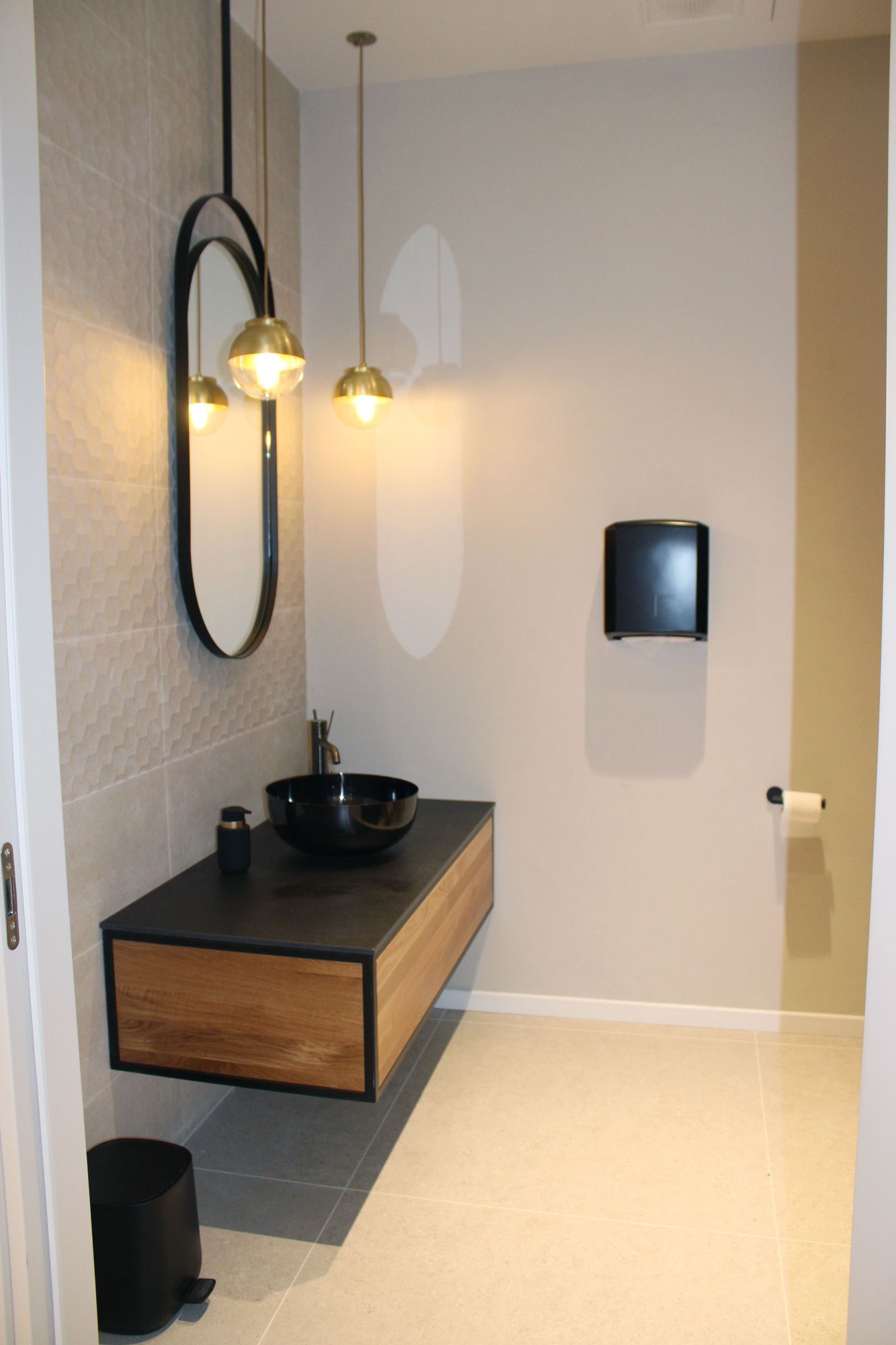 - חיפוי הקירות נבחר בהתאמה ללוגו החברה.