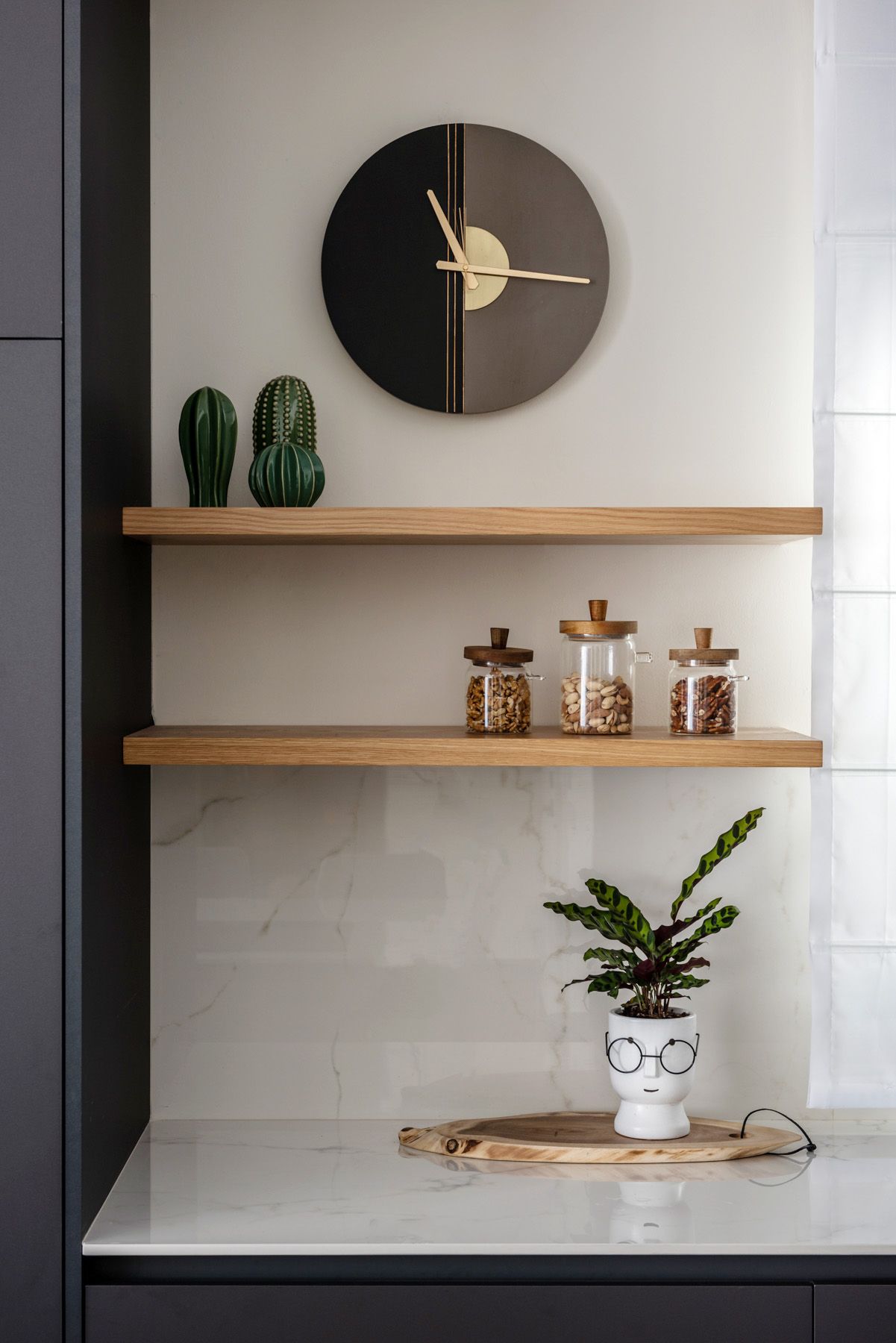 אזור ייעודי למוצרי אפיה ובישול שיהיו באופן קבוע על השיש אך יוסתרו כשהם לא בשימוש.