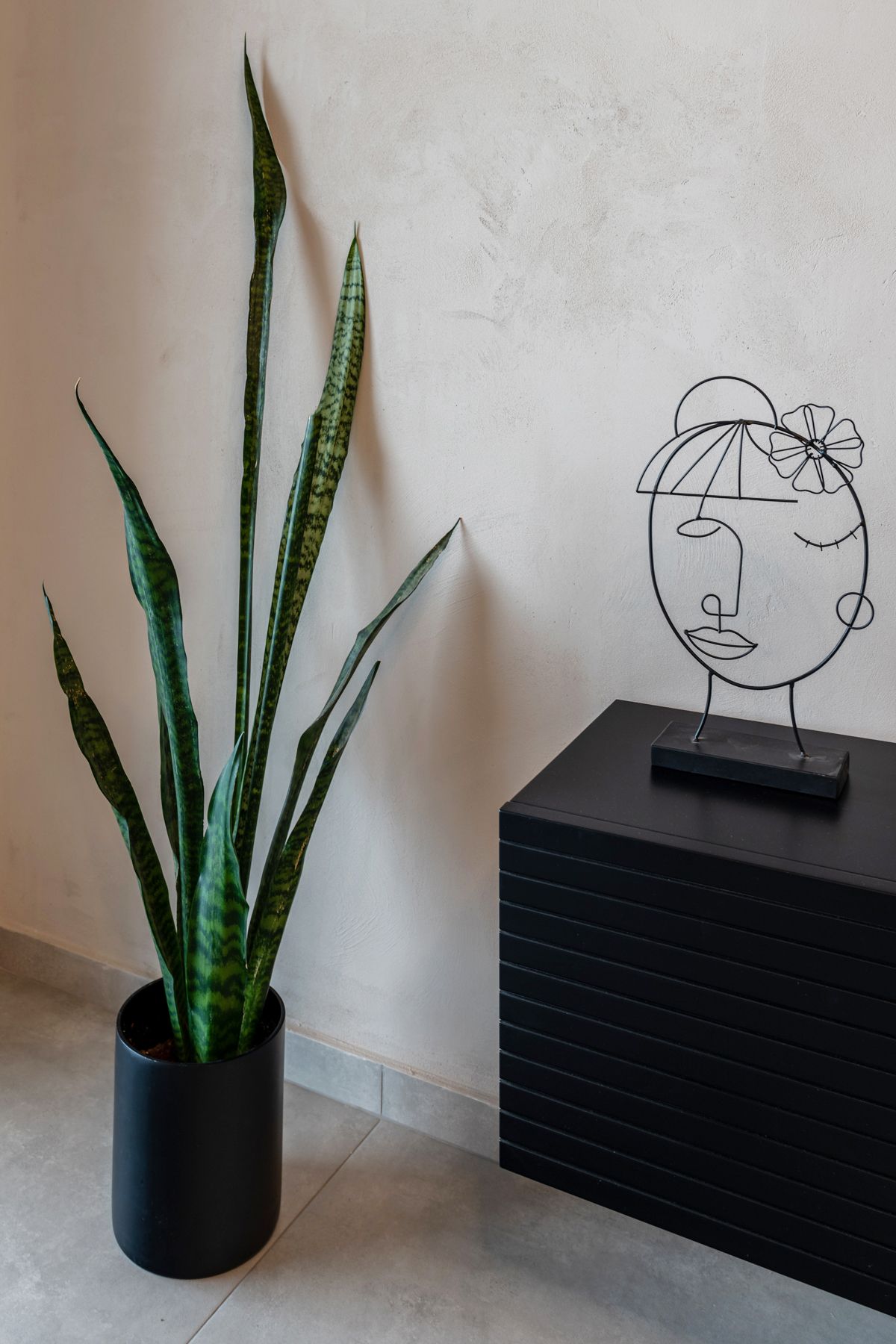 - נבחרו בקפידה: פרטי נוי משלימים, צמחיה ירוקה ושטיח בגווני אפור ובז` היוצרים יחד מראה מעודן.