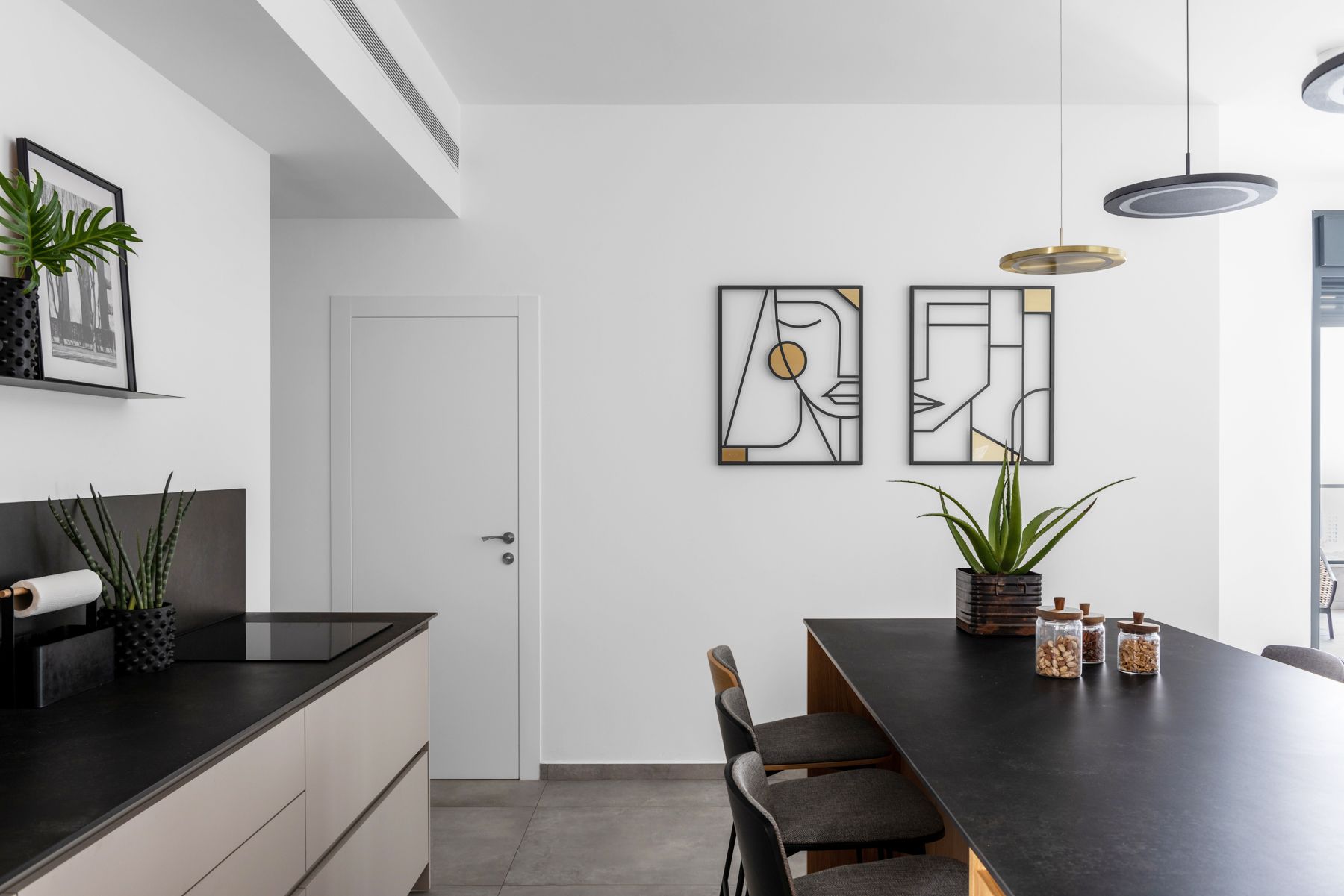 - בקווים מקבילים שני משטחי עבודה יוצרים מטבח מודרני אך מאופק, פונקציונאלי ולא שגרתי.