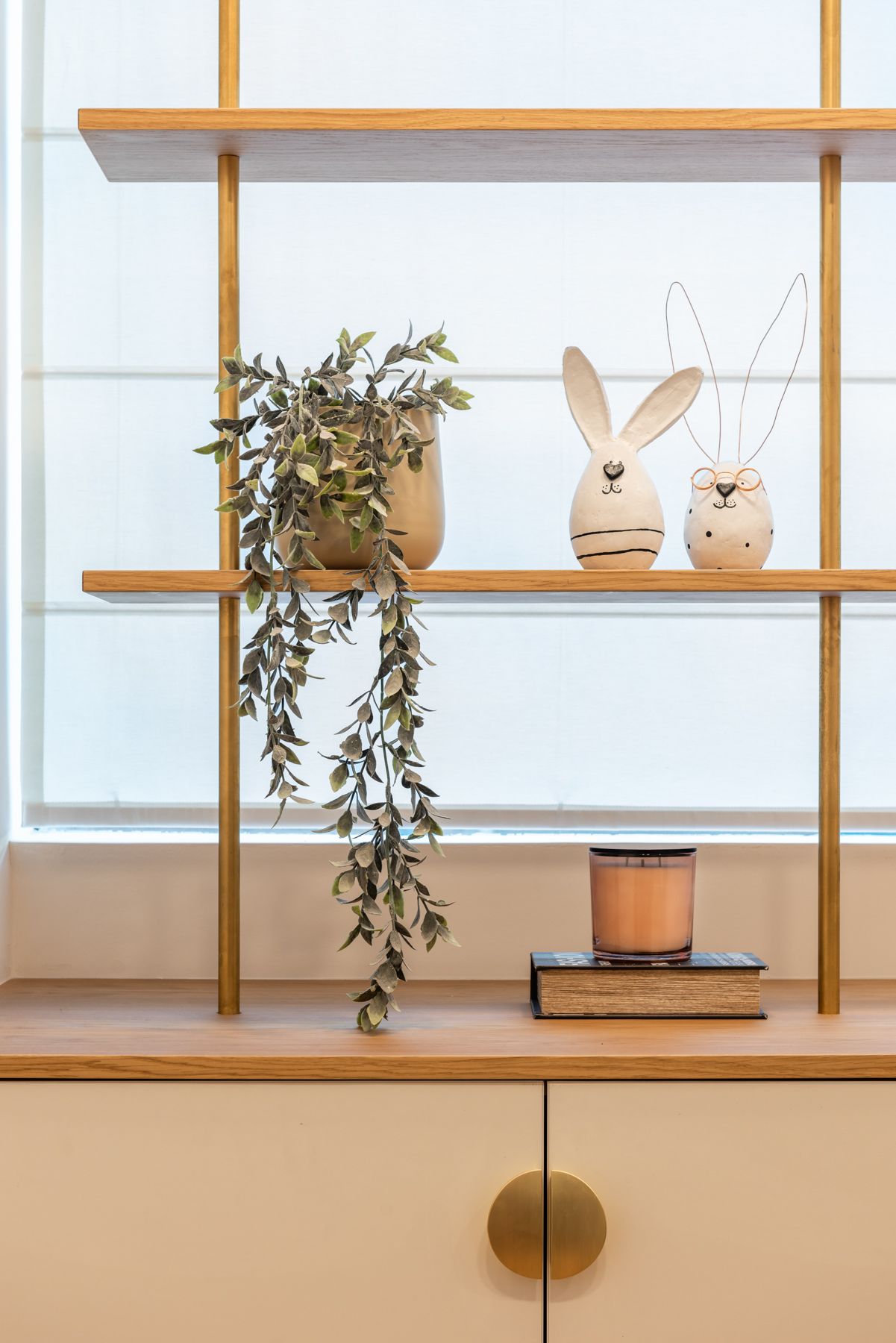 לבסוף נבחרה ויטרינה מברזל בלגי בגוון בהיר התואם לנגרות וצבע הקירות.