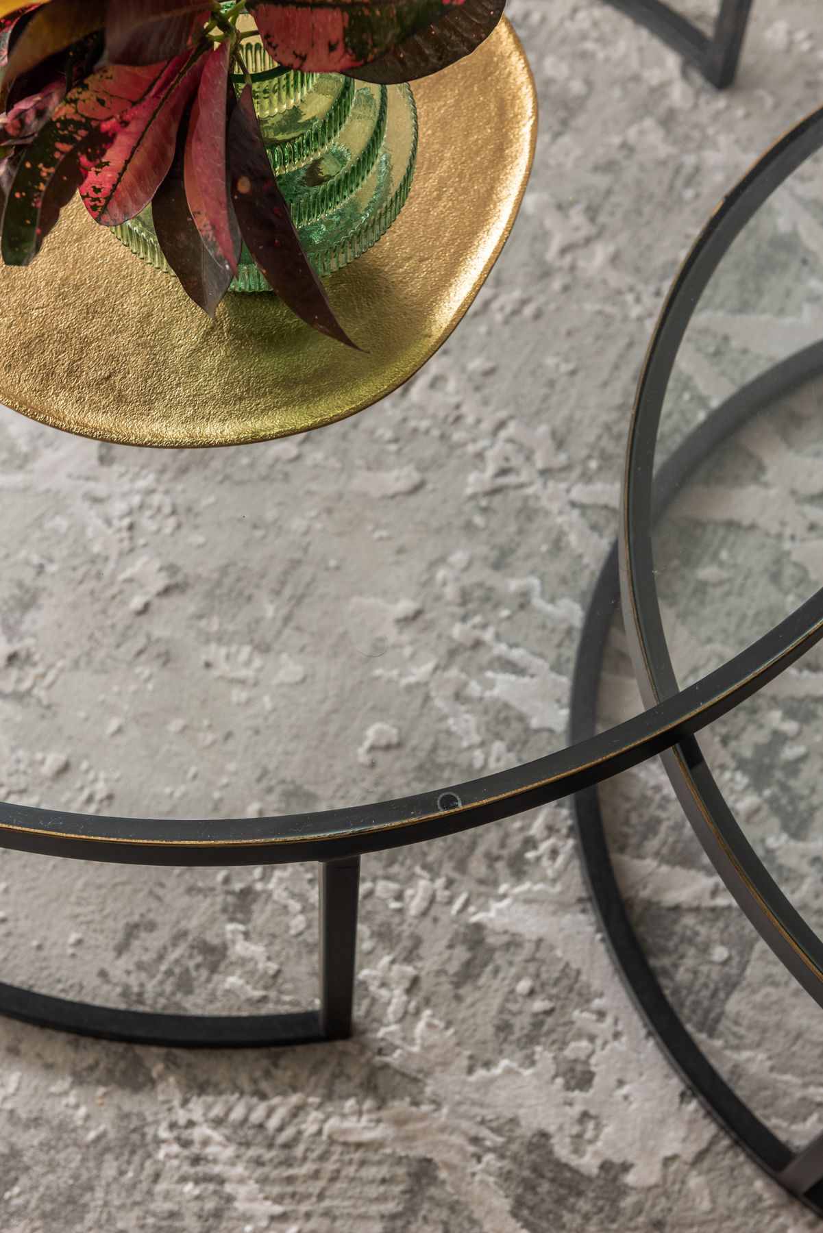 סט 2 שולחנות בעלי מסגרת מתכת + פס זהב בשילוב זכוכית מחוסמת.