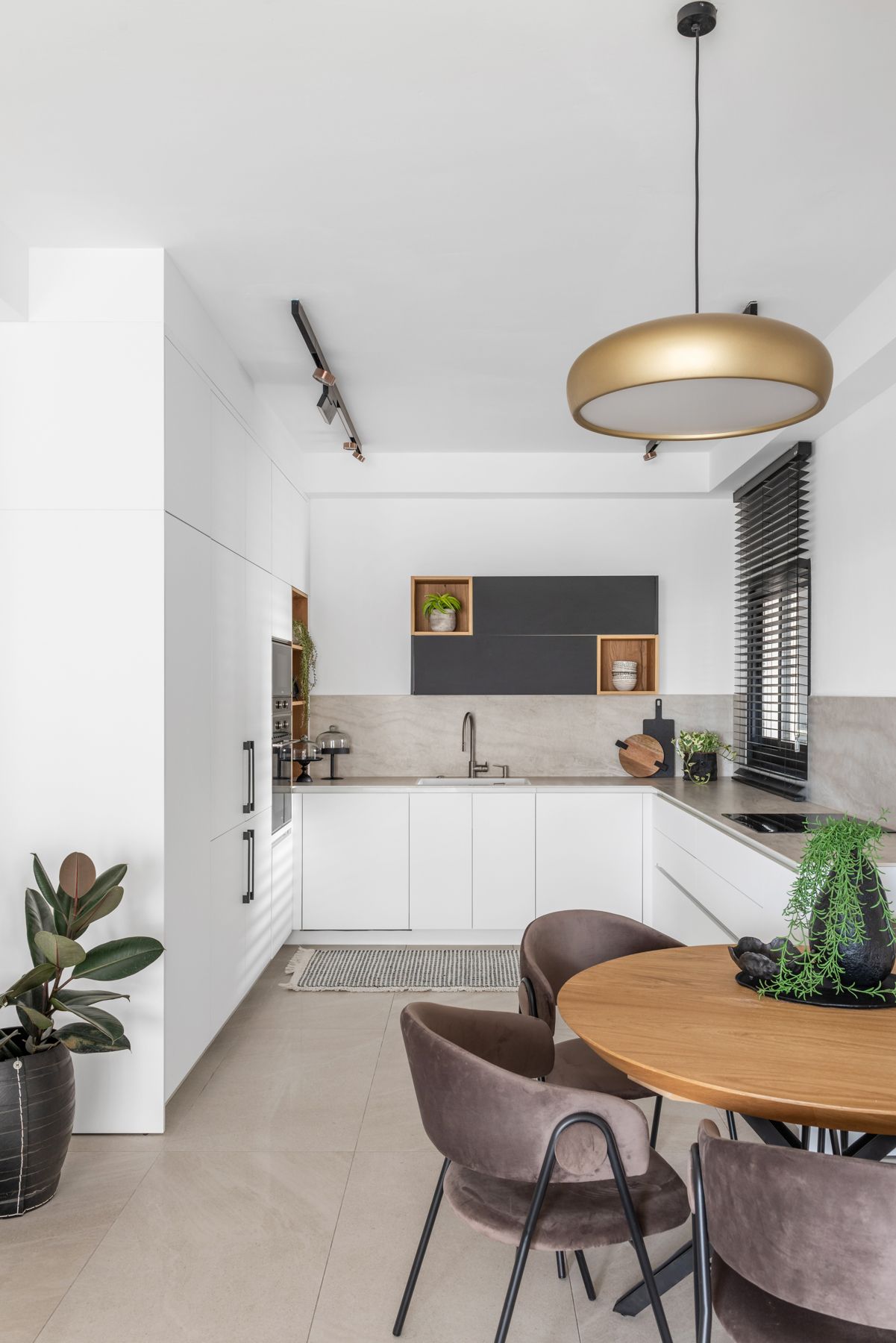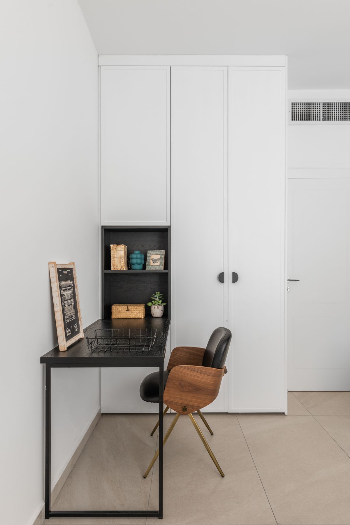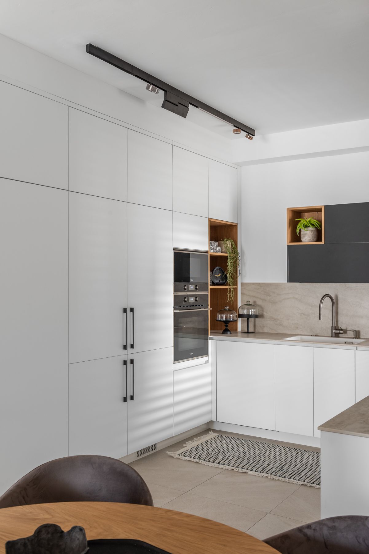 בדירת הקבלן שנקנתה פחות או יותר מוכנה אך עם סטנדרט גבוה יחסית (בריצוף ובסנטריה) מקסמנו את האפשרויות, מיקדנו את השינויים הנדרשים ויצרנו חללים מושלמים.