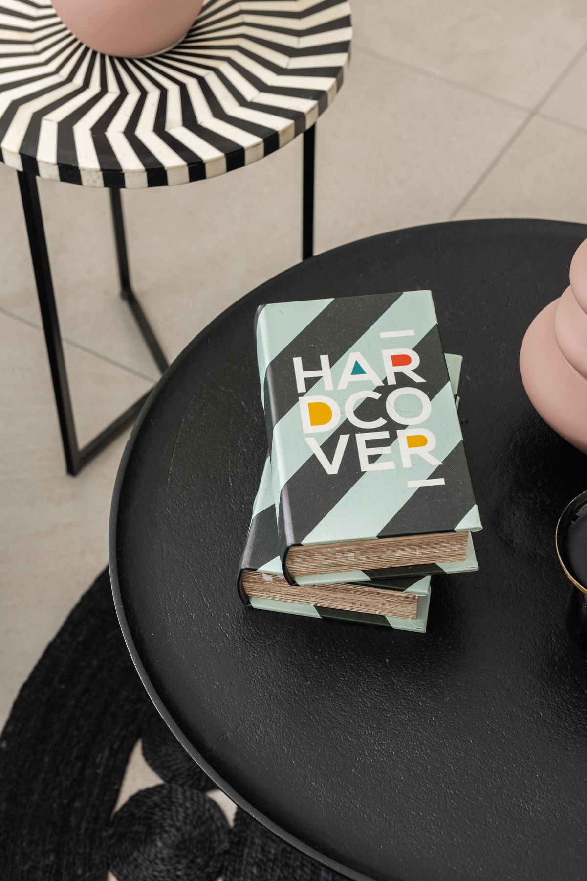 שולחן מגזינים בשילוב של פלטת עץ ורגל יצוקה מתכת- המשמש כשולחן צד לספה.